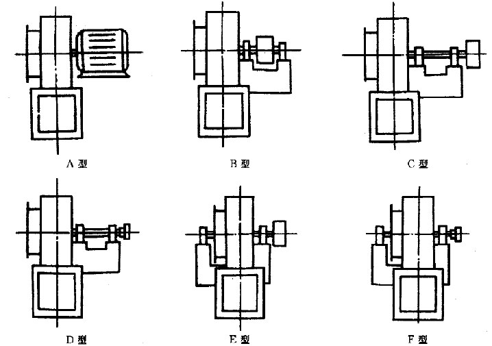 3、皮帶傳動。皮帶傳動顧名思義就是通過皮帶與皮帶輪來驅(qū)動風(fēng)機(jī)的運(yùn)轉(zhuǎn)。皮帶傳動式由于皮帶輪位置的不同又可分為4種形式